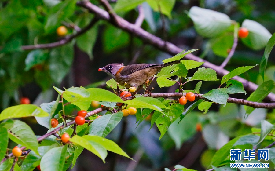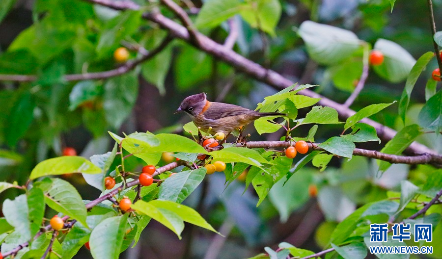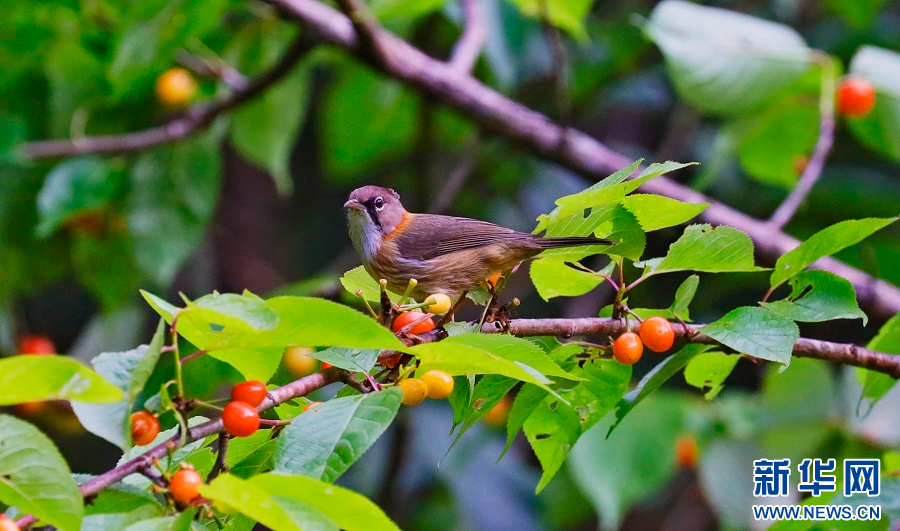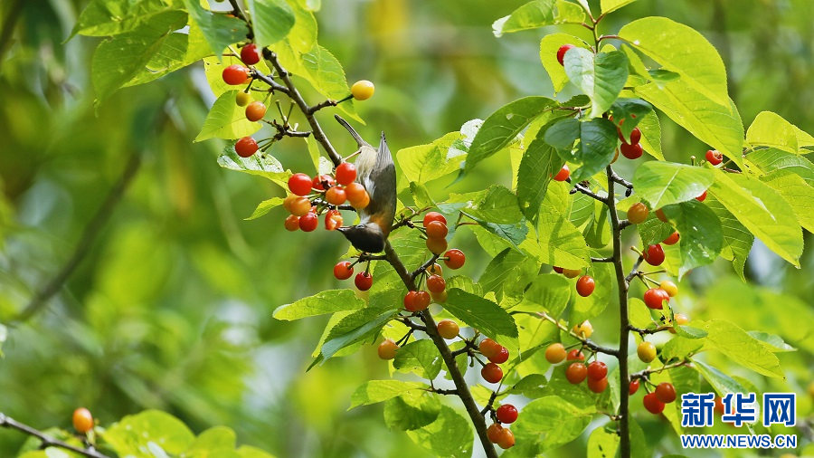 在云南省保山市龙陵县的山野上,零星分布的樱桃红了。走进细看,一颗颗黄中带红、红中带亮的樱桃缀满枝头,引来了唧唧喳喳的小鸟儿们前来抢“鲜”。近日,当地摄影爱好者用相机拍到了几段黄颈凤鹛在枝头吃红樱桃的有趣画面。(完)