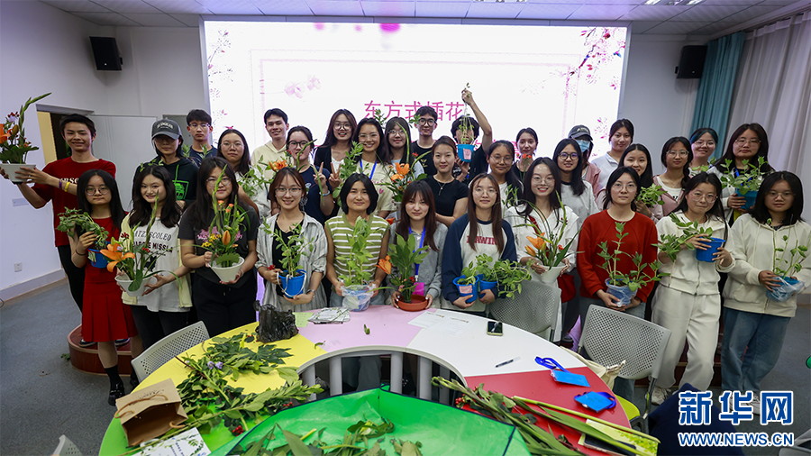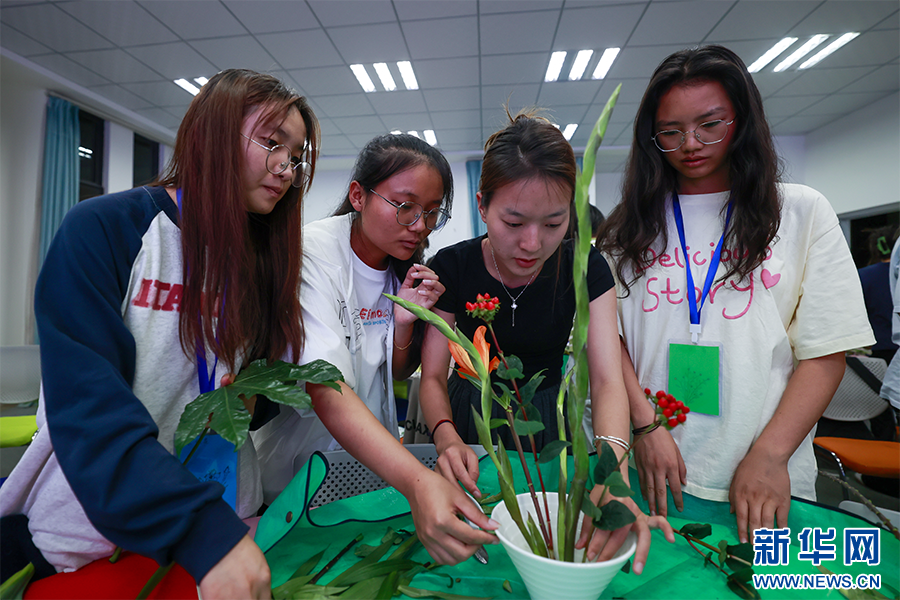 学生们正在插花(5月23日摄)。新华网发(刘云 摄)