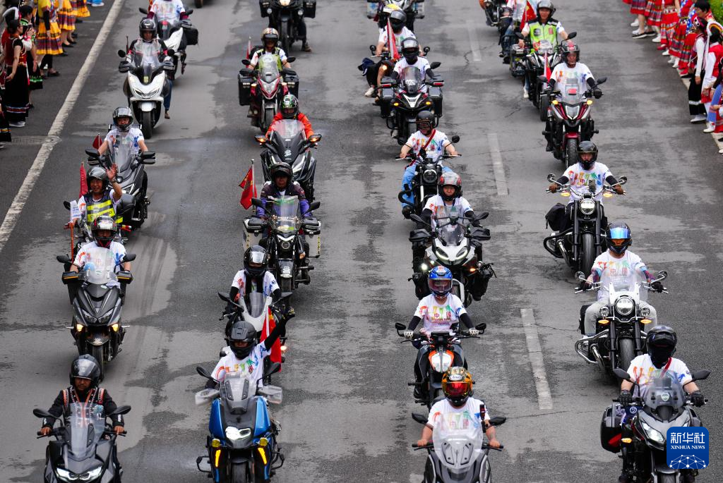 5月25日,车队在泸水市怒江大道上巡游。新华社记者 王静颐 摄