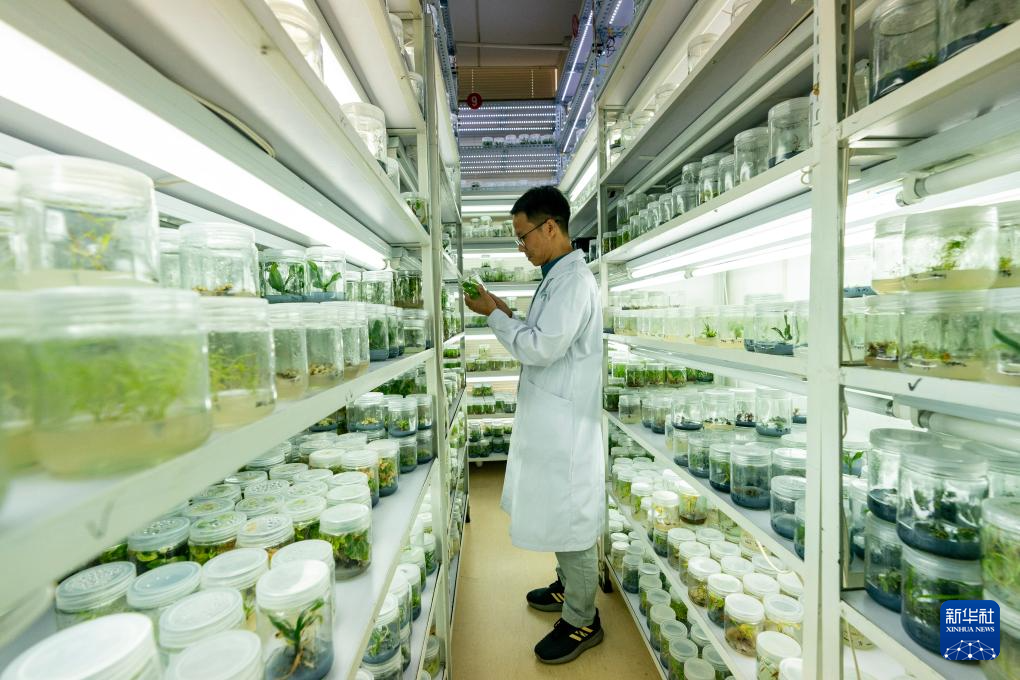 中国西南野生生物种质资源库工作人员在查看植物离体种质材料(2023年9月27日摄)。新华社记者 陈欣波 摄