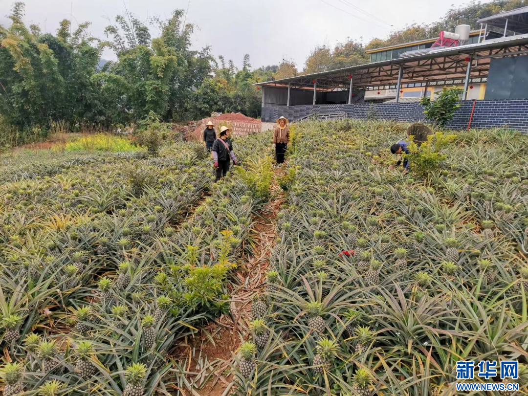 近日,云南省景谷傣族彝族自治县凤山镇那肖田村民小组的菠萝进入采摘季,金黄色的菠萝散发出诱人的芳香,为繁忙的劳动者增添了一丝甜意。