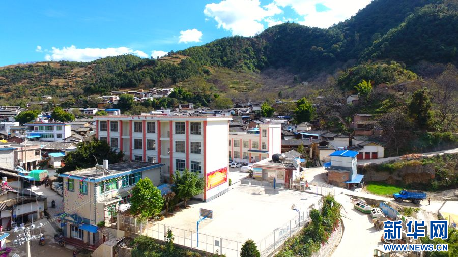 航拍拉乌完小(4月10日摄)。新华网发(温昌盛 摄)