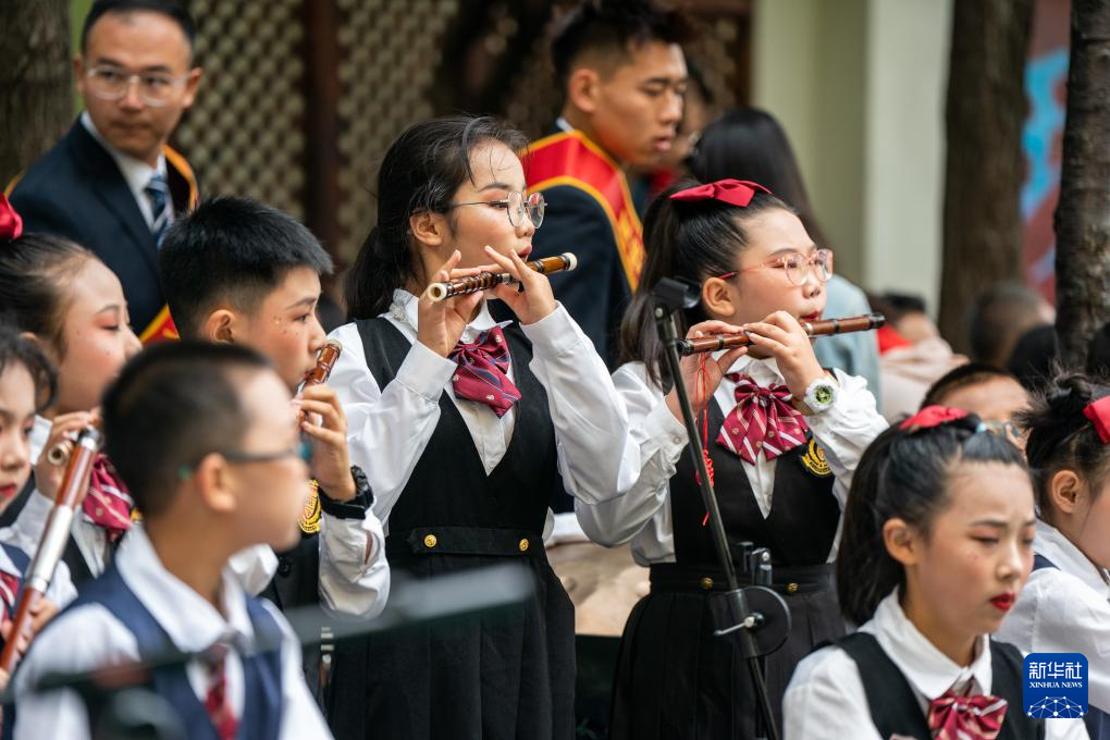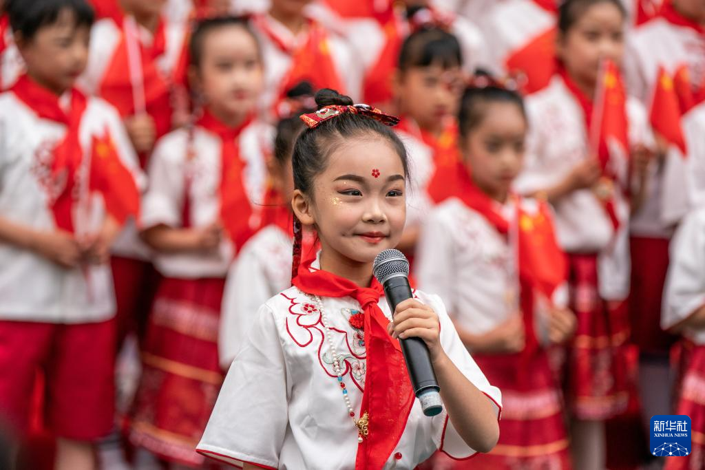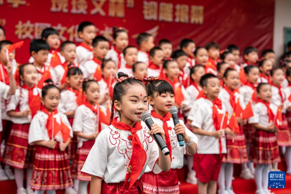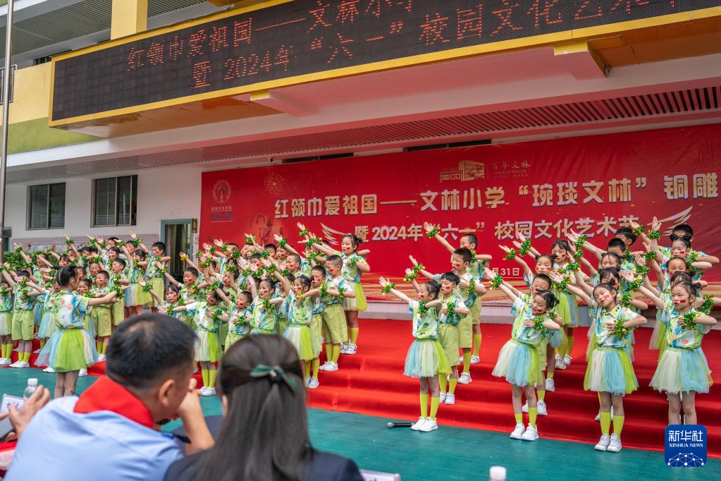 在“六一”国际儿童节来临之际,昆明市文林小学举办“红领巾爱祖国”——文林小学“琬琰文林”铜雕揭幕暨 2024年“六一”校园文化艺术节,通过丰富多彩的文化活动,让孩子们在快乐的氛围中迎接儿童节的到来。(新华社记者胡超 摄)