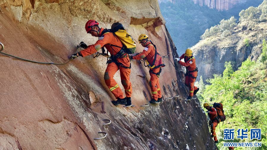 绳索救援训练(5月24日摄)。新华网发(李长顺 摄)