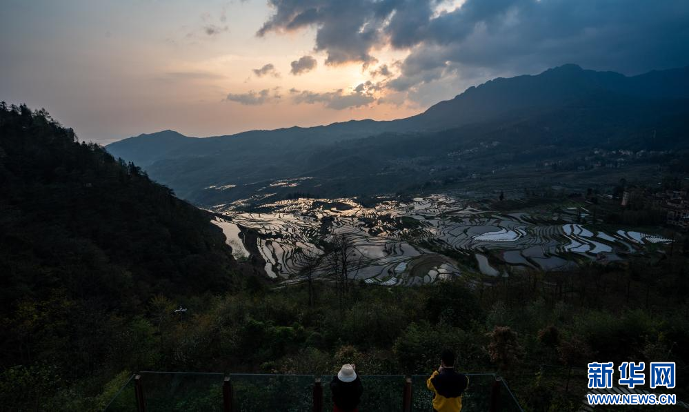 游客在云南省红河哈尼族彝族自治州元阳县欣赏哈尼梯田美景。(资料照片)