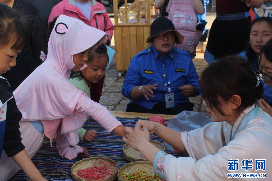 “和美古城·浓情端午”文化系列活动中,工作人员给小朋友赠送五彩线(6月8日摄)。新华网发(和新兰 摄)