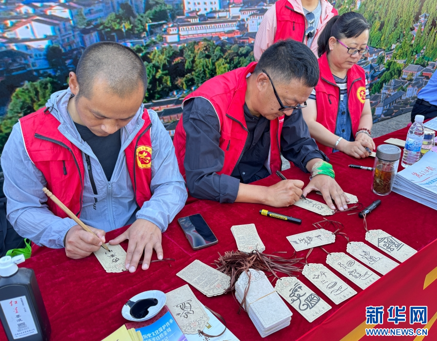 在现场,书写东巴文字的展位颇受市民和游客欢迎,不时有市民和游客驻足拍照欣赏,书写东巴文字的工作人员现场挥毫,在一张张卡片上写下了寓意美好的象形文字,送给现场的市民和游客。