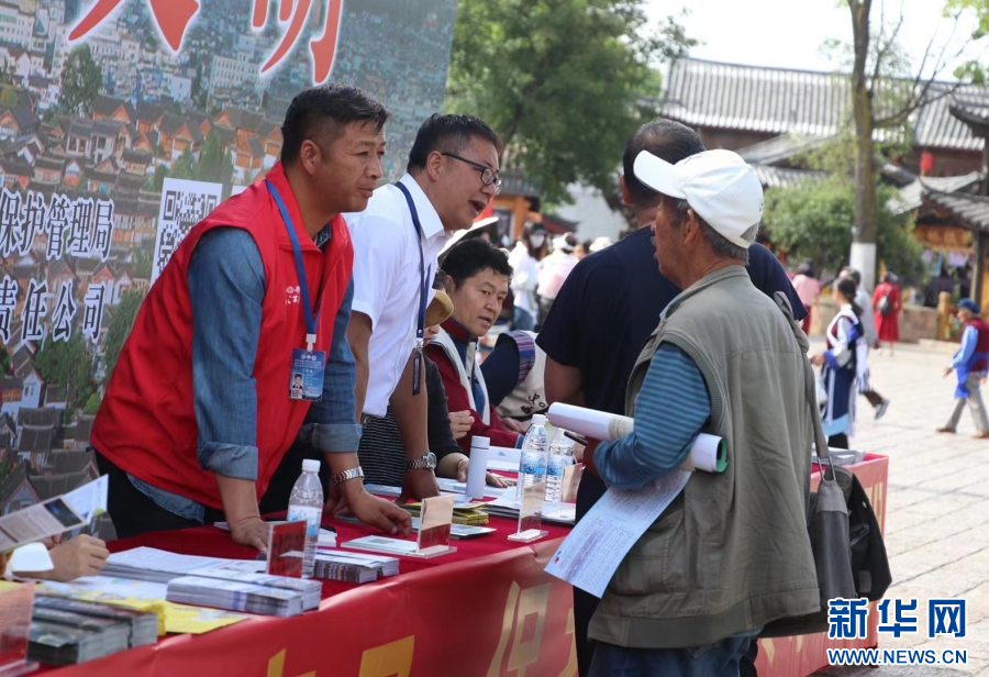 当日上午,在丽江古城玉河广场,丽江古城保护管理局向游客、商户及市民等广大群众开展遗产监测、综合执法、房屋修缮、文物保护、生态环境保护、消防安全、文化遗产保护、智慧小镇建设等内容的咨询及宣传展示活动。