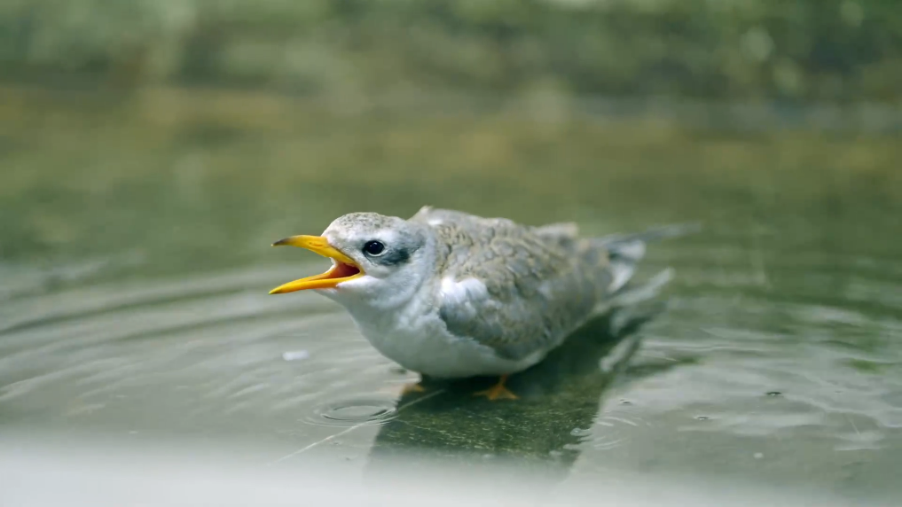 该河燕鸥是从候鸟“父母”弃巢后遗留的鸟蛋中采取人工孵化救护破壳而出,在各方专家的精心呵护下,达到放生条件。