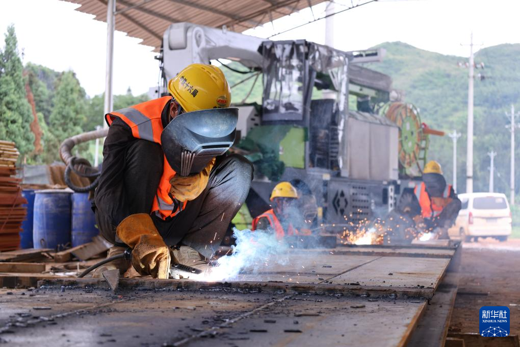 6月12日,工人在云南文山至蒙自铁路州界隧道斜井施工现场作业。新华社发