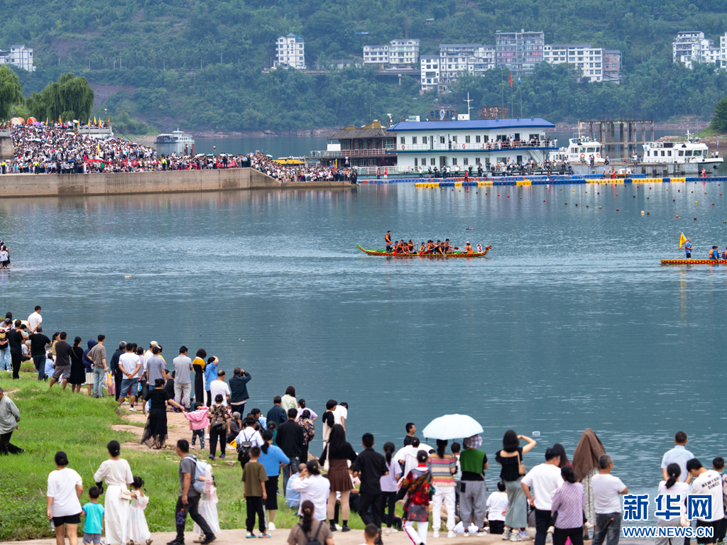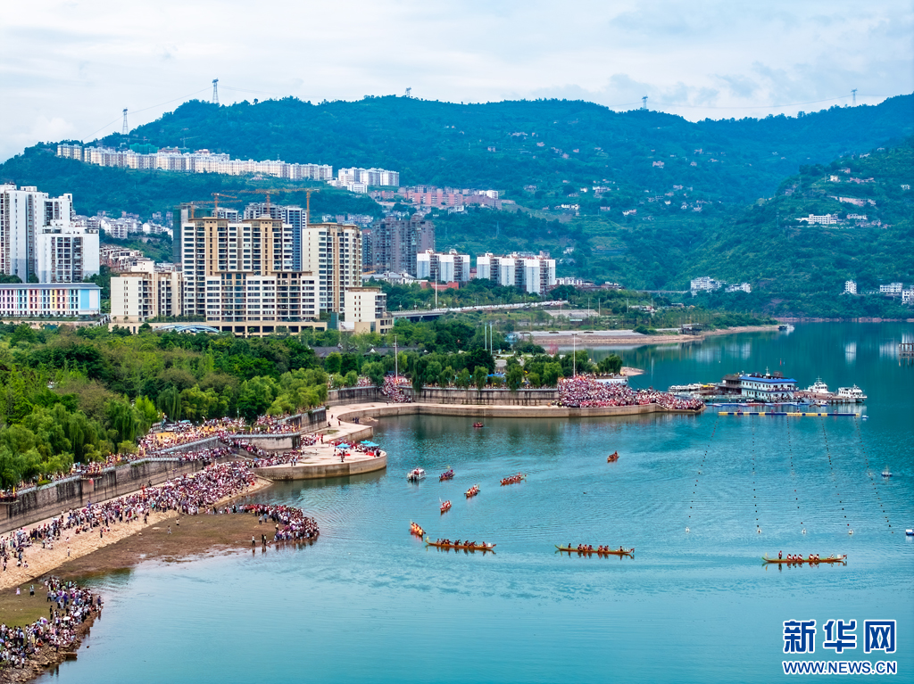 群众齐聚金沙江畔观看龙舟赛事(6月10日摄)。新华网发(曾三东 摄)