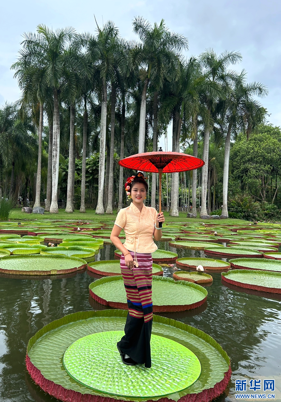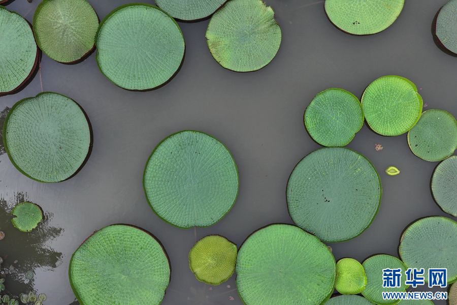 中国科学院西双版纳热带植物园,王莲进入最佳观赏期。新华网发(张娇娇 摄)