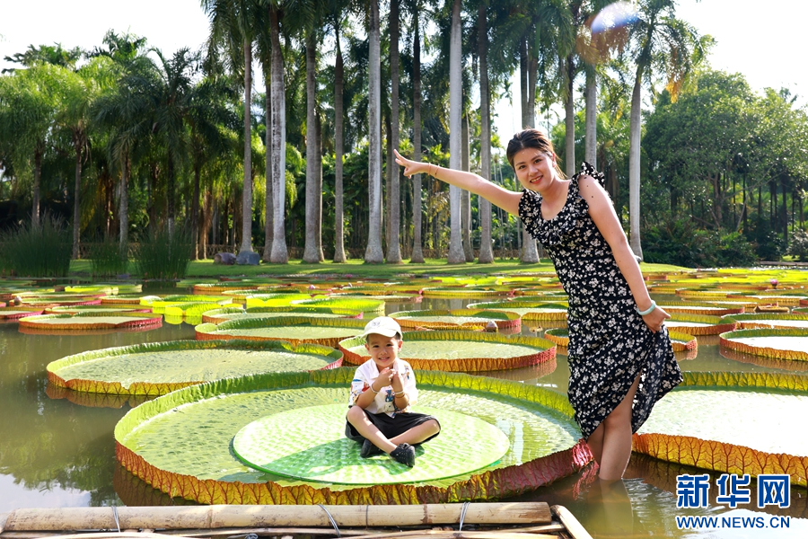 王莲有着“莲中大力士”之称,叶片直径可达2米以上,最多可承重六七十公斤。近日,中国科学院西双版纳热带植物园中的王莲进入最佳观赏期,园内开展了“我的王莲我的船”体验活动,吸引了众多游客前来赏王莲、坐王莲,一睹“莲中大力士”的神奇,体验一叶当舟的乐趣。