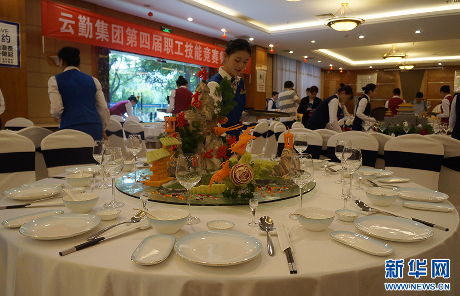 面条做的孔雀栩栩如生、萝卜丝制作的龙雕刻精细……一道道美食色泽艳丽、摆盘精致,让人眼花缭乱。这是6月15日,云南云勤服务集团有限责任公司(以下简称云勤集团)第四届职工技能竞赛的现场。