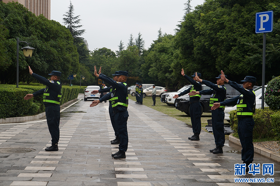 比赛前,参赛人员进行秩序维护演练(摄于6月15日)。
