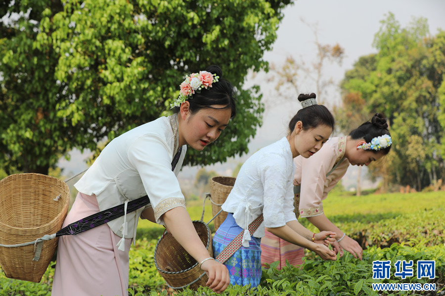 采摘大白茶。新华网发(景谷县融媒体中心供图)