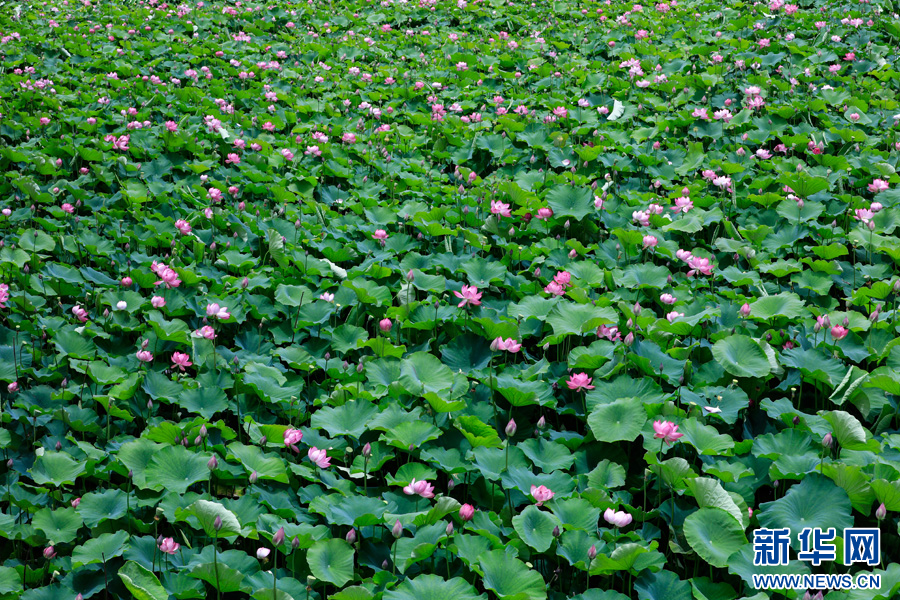 连片盛开的荷花(6月22日摄)。新华网发(安宁市融媒体中心供图)