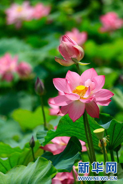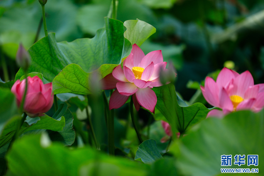 盛开的荷花(6月22日摄)。新华网发(安宁市融媒体中心供图)