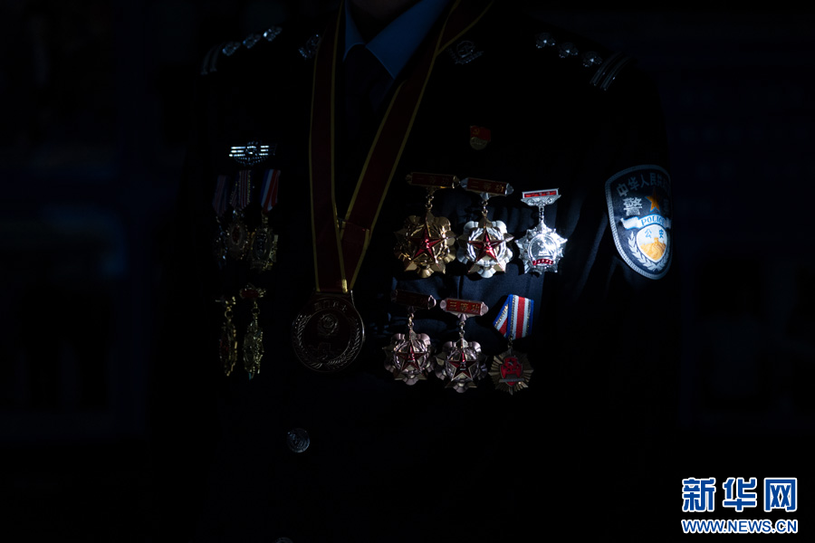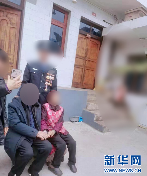 与父母的唯一一张合照中,“某某某”身着警服,胸前挂满了荣誉勋章。他是父母最大的骄傲,也是亏欠父母最多的人。