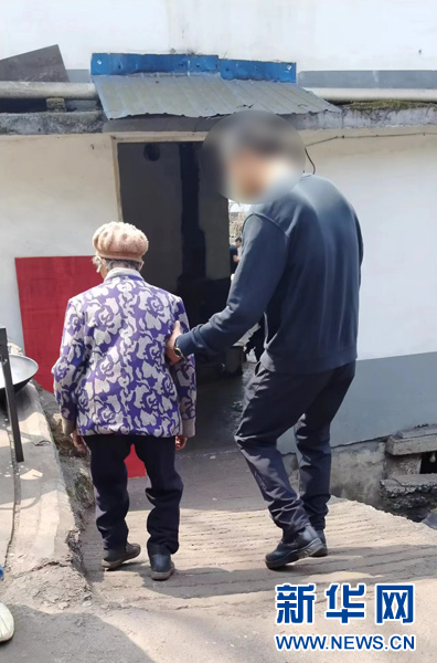 “某某某”搀扶着年迈的母亲(资料图)。新华网发(西双版纳边境管理支队供图)