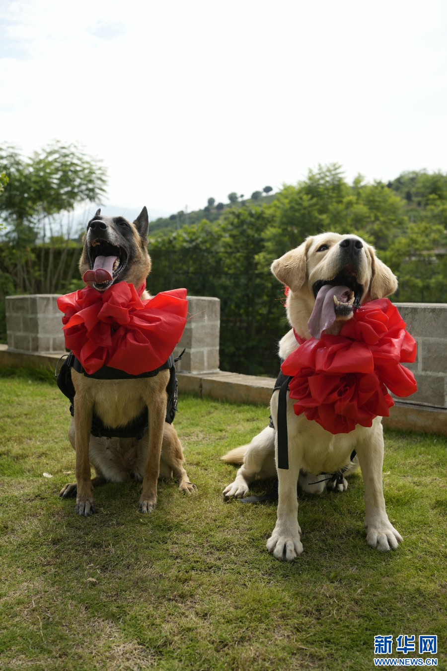 两头功勋犬也在用其敏锐的嗅觉和忠诚的品质