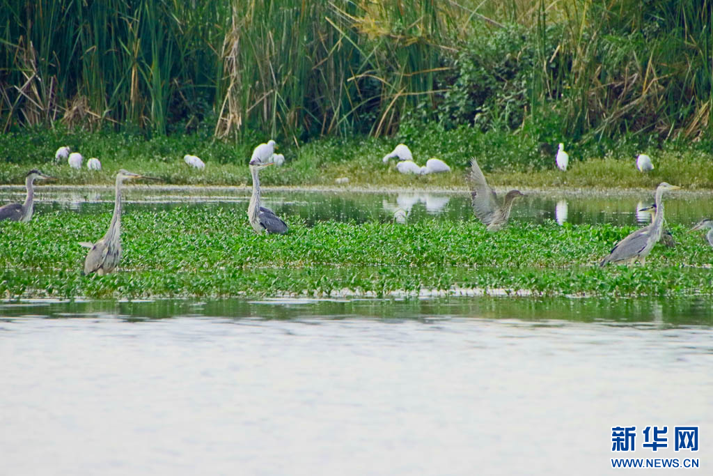 湖泉生态园里的苍鹭和白鹭(6月28日摄)。新华网发(赵树龙 摄)