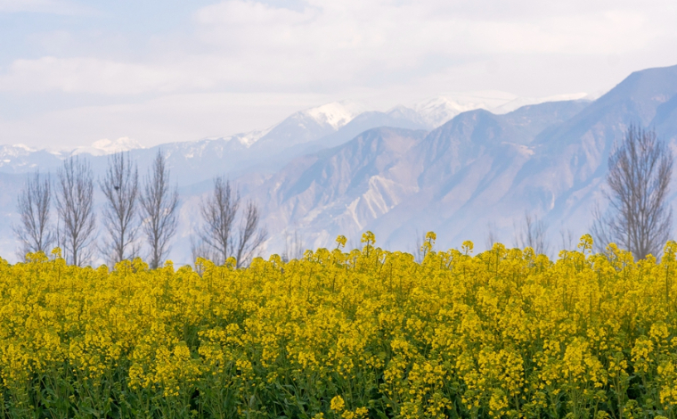 扇面题款显示画作主题为“双柑斗酒听黄莺”