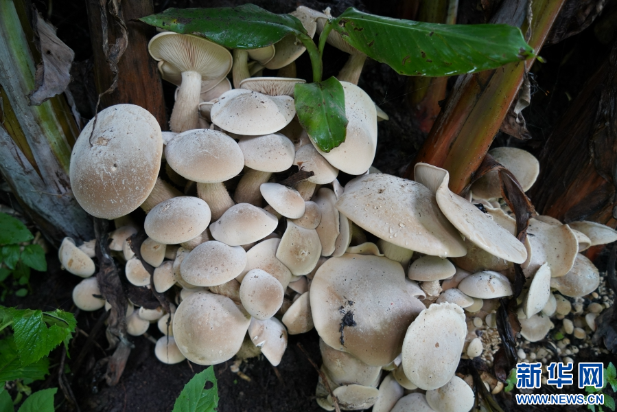 村民发现的巨型野生菌(7月17日摄)。新华网发(刘子安 摄)