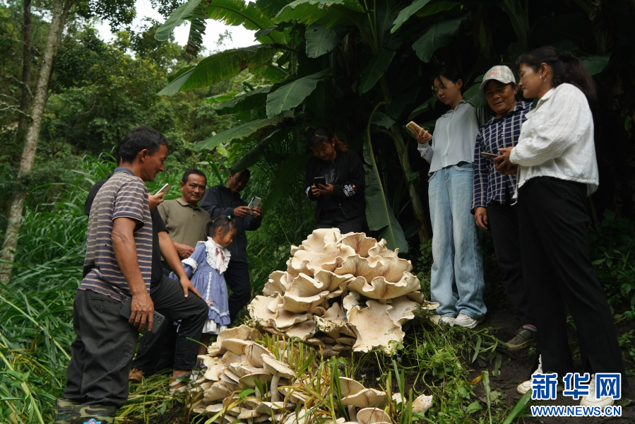 巨型野生菌吸引了当地群众前来围观(7月17日摄)。新华网发(刘子安 摄)