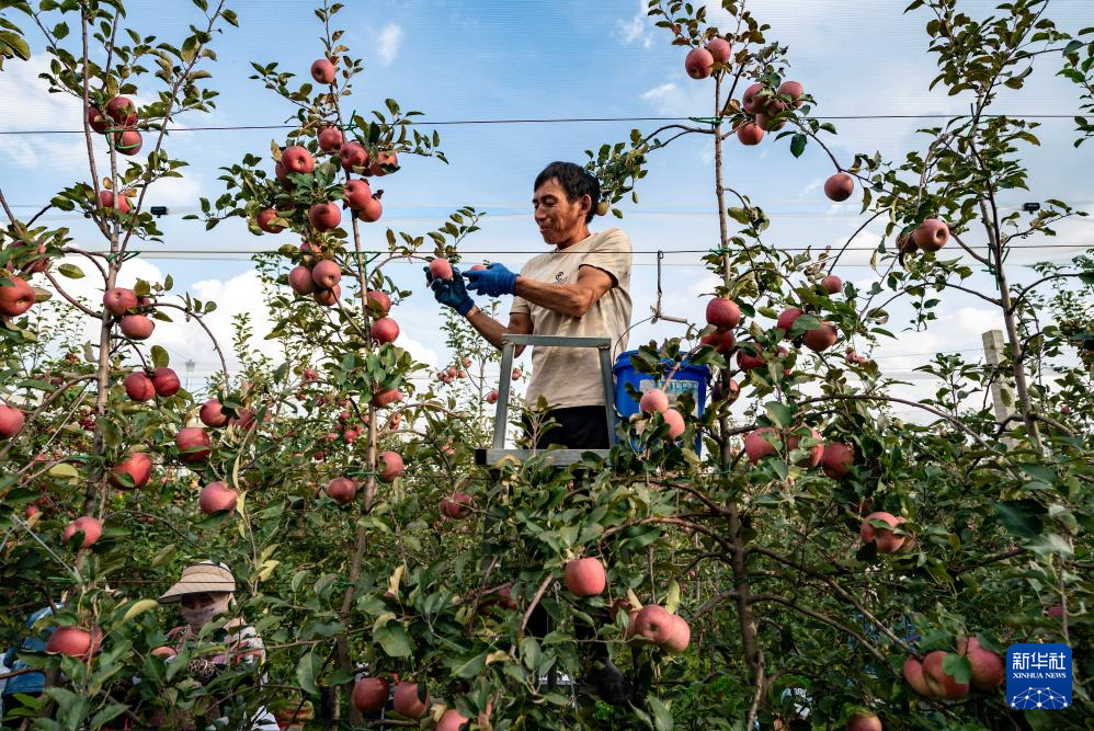 果农在云南省昭通市一处苹果基地采摘苹果(2023年10月30日摄)。新华社记者 陈欣波 摄