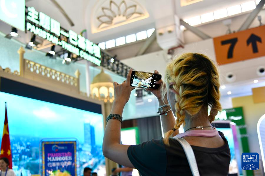7月24日,观众拍摄巴基斯坦主题国展区。新华社记者 王贤思 摄