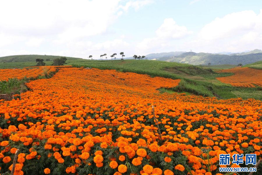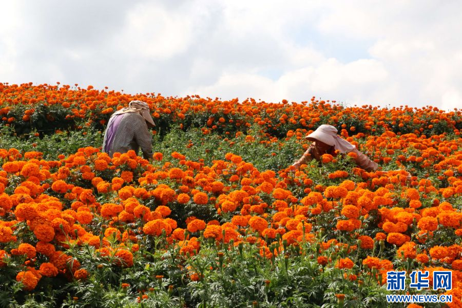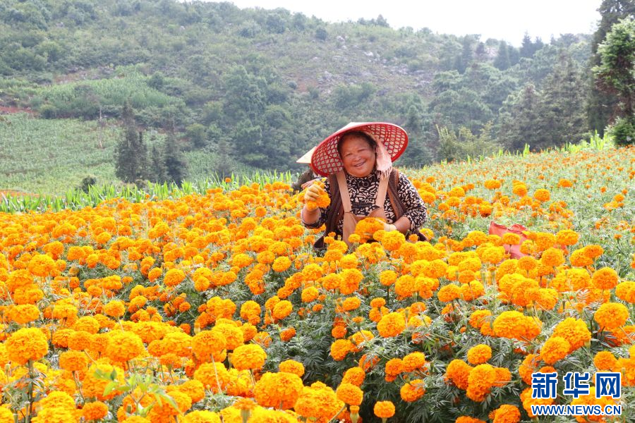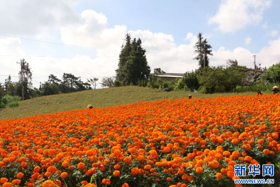 村民采收万寿菊(7月24日摄)。新华网发(杨玥莞 摄)