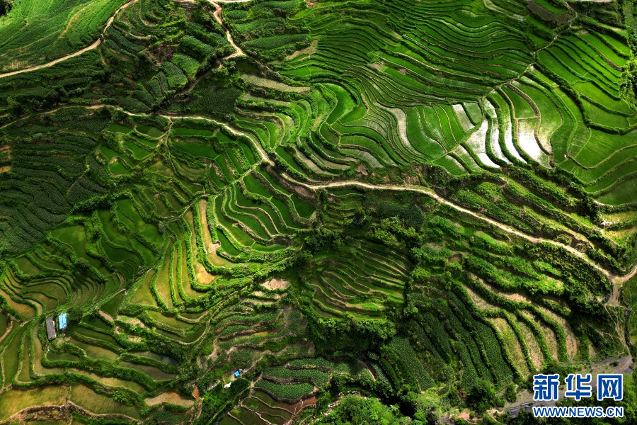 航拍梯田美景(7月23日摄)。新华网发(适志宏 摄)