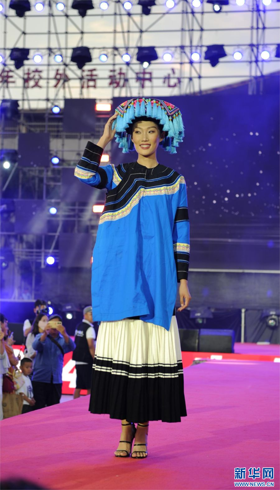 在禄丰市,模特身穿彝族服饰走秀(7月27日摄)。新华网发(禄丰市融媒体中心供图)