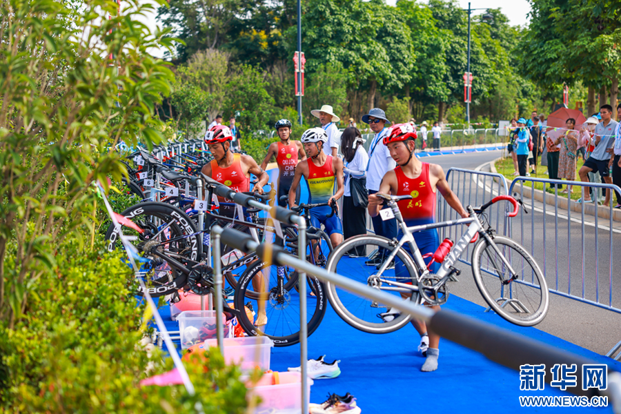 7月24日,云南省第二届青少年(学生)运动会铁人三项项目中,比赛选手结束骑行准备进行长跑。新华网发(陶家淇 摄)