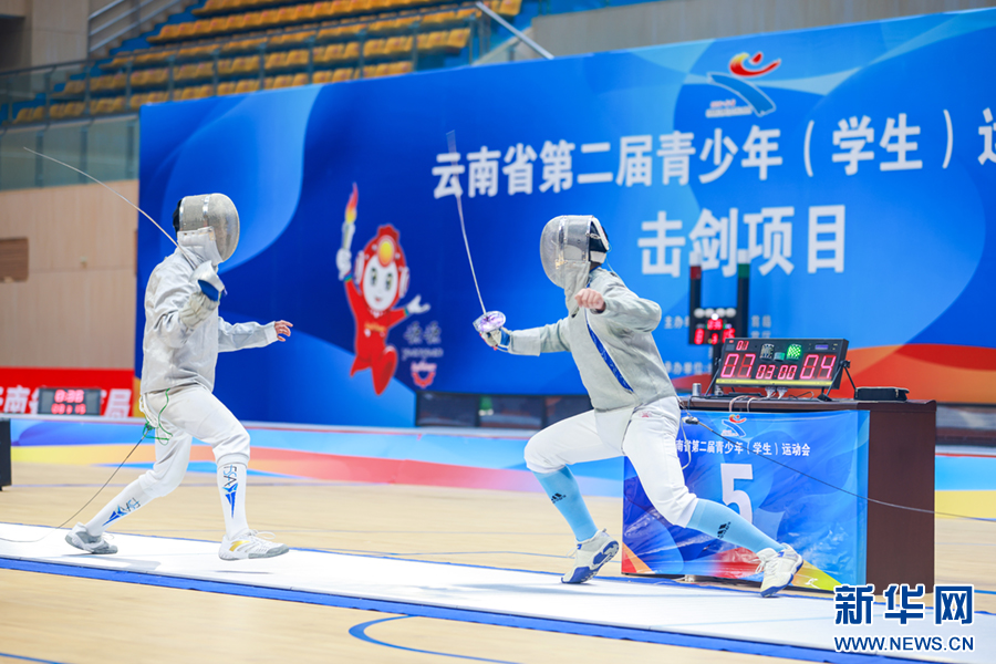 7月20日,云南省第二届青少年(学生)运动会击剑项目比赛如火如荼。新华网发(陶家淇 摄)