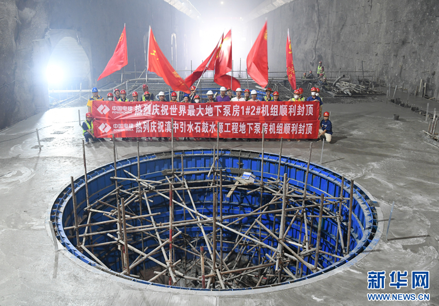 滇中引水石鼓水源工程地下泵房最大埋深333米,开挖尺寸为217米(长)×23.4米(宽)×48米(高)。滇中引水石鼓水源工程是滇中引水工程的两大主体工程之一,1号2号机组的顺利封顶为后续水泵机组设备安装及调试奠定了坚实基础。新华网发(赵庆祖 摄)