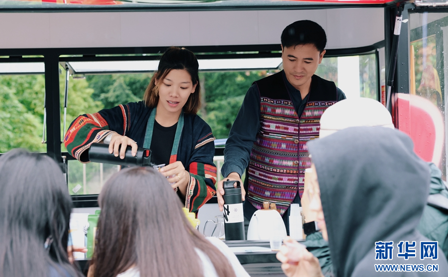2024滇池东岸国际咖啡文化嘉年华活动,吸引了众多咖啡馆及上下游产业链品牌参加,图为两名主理人为市民和游客提供试饮(摄于8月10日)。