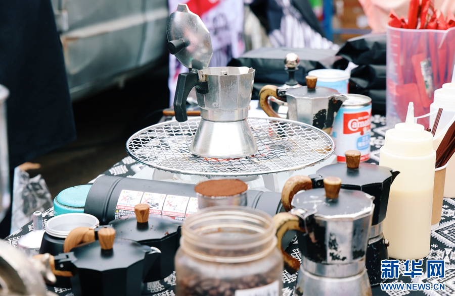 2024滇池东岸国际咖啡文化嘉年华活动现场,一个摊位前正在制作咖啡(摄于8月11日)。