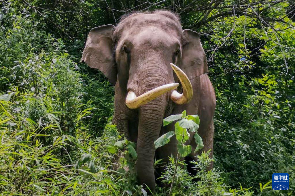 新华社昆明8月12日电(记者伍晓阳、赵珮然)“昆六”体格威武雄壮,有一对成年公象标志性的象牙。放眼野象界,它是妥妥的一枚“帅哥”。