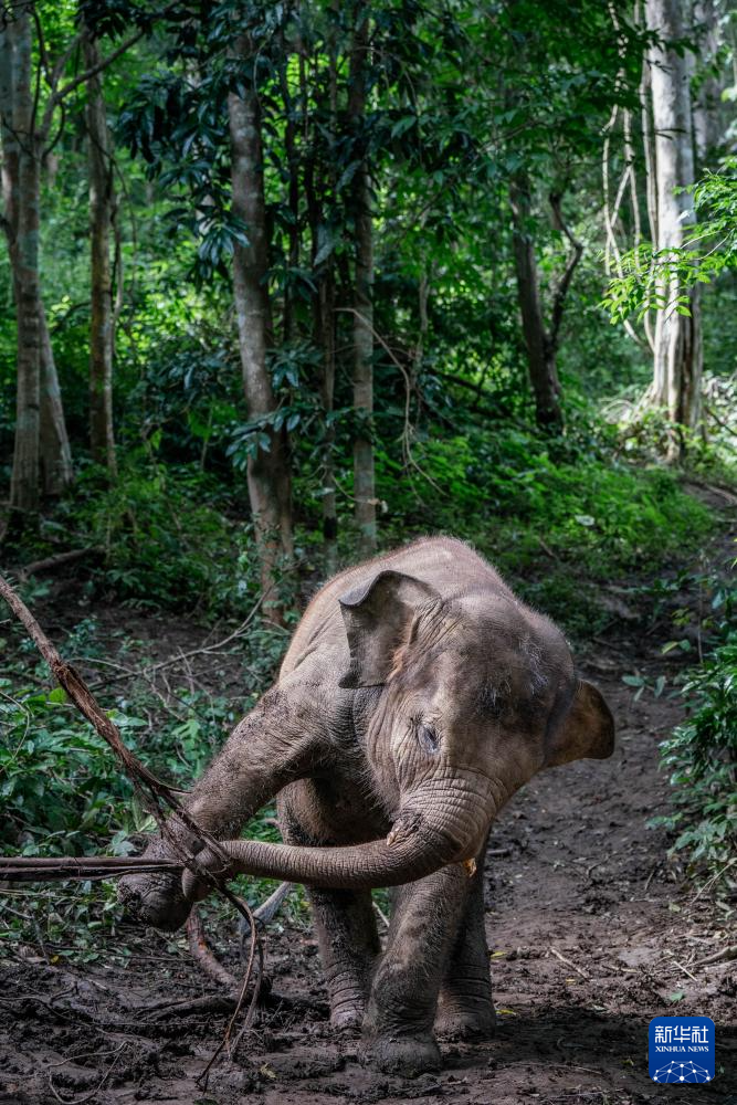 这头曾因伤被人类救助的小象,如今在“象爸爸们”的悉心照料下健康成长,展现出旺盛的活力。无论是玩藤蔓,还是在泥土中打滚,龙龙总是能找到属于它的快乐。