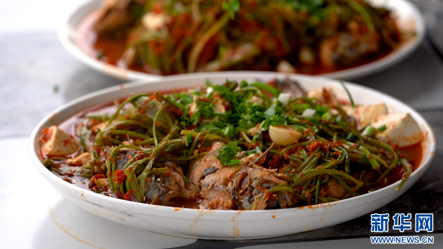 大理洱源特色美食“海菜鱼”(视频截图)。