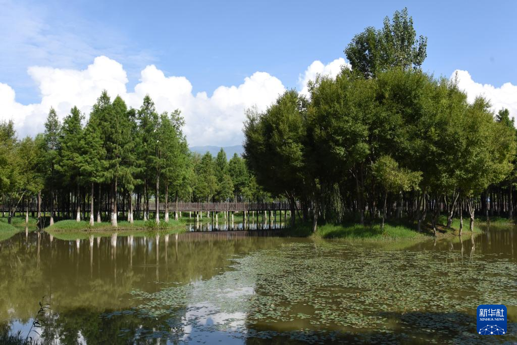 这是8月21日拍摄的茈碧湖弥茨河入湖口处的湿地公园。新华社记者 刘思远 摄