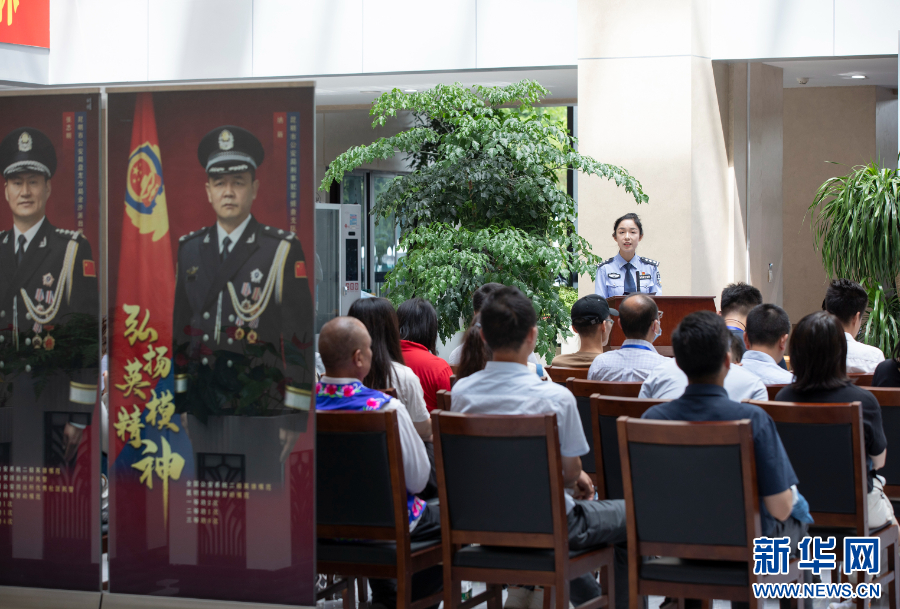 民警梁自厚进行反诈经验分享(摄于8月22日)。新华网发(供图)