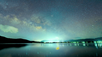 初秋,在云南省大理白族自治州洱源县的茈碧湖畔,繁星点缀夜空,银河横跨天际,星河相映。摄影师用延时摄影捕捉了这一美景,生动再现了“醉后不知天在水,满船清梦压星河”的诗意。