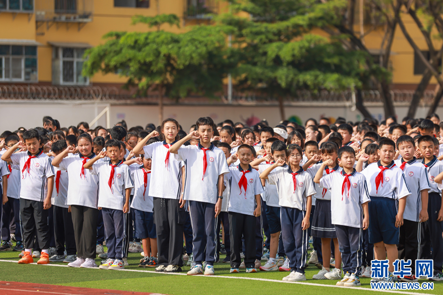 9月2日,云南省开远市东城小学,学生在国旗下宣誓。新华网发(陶家淇 摄)