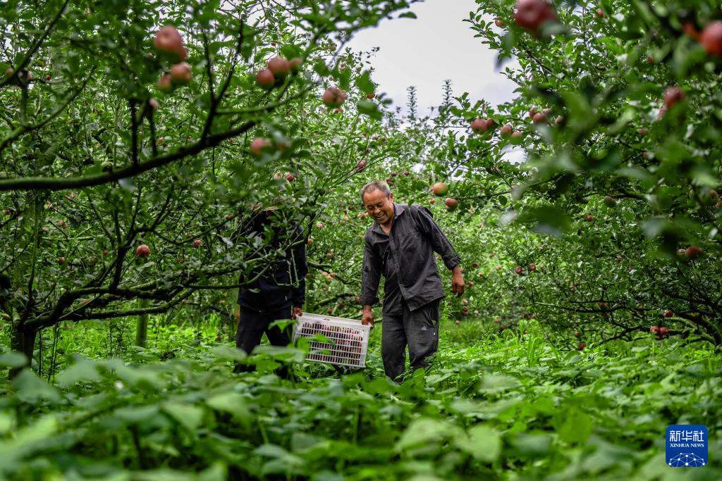9月3日,云南省红河州蒙自市西北勒乡的农户在采摘苹果。新华社记者 胡超 摄