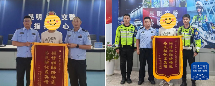 为昆明交警与当天参与护送的民辅警送来了锦旗