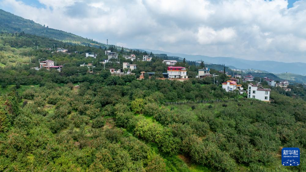 9月5日拍摄的红河州个旧市鸡街镇万亩梨园一景(无人机照片)。新华社记者 胡超 摄