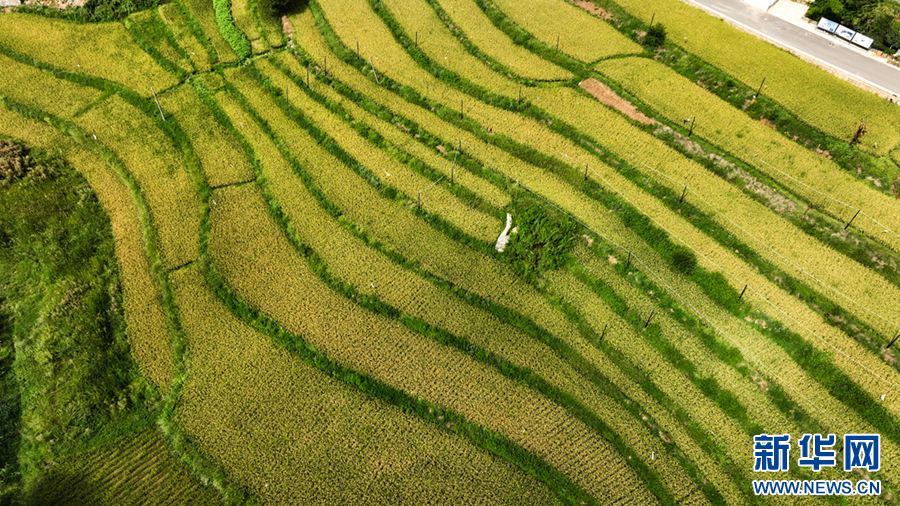 9月4日,云南省曲靖市沾益区王家小村,梯田丰收在望。新华网发(孙文来 摄)